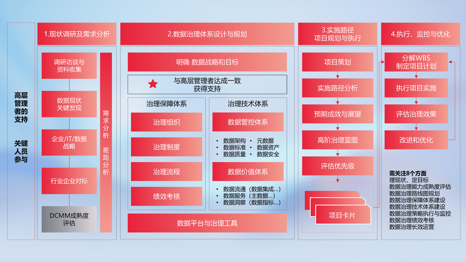 制定并执行统一的数据标准,,,规范数据定义和格式,,消除冗余和不一致性,,,实现跨部门和跨系统的数据一致性,,,,为企业提供标准化的数据基础。。
